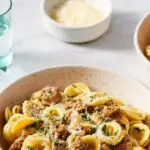 This One Pan Orecchiette Pasta is a flavorful and easy-to-make dish perfect for quick meals. It features spicy Italian sausage, tender orecchiette pasta, and fresh arugula, all cooked in a single skillet with low-sodium chicken broth. The recipe is budget-friendly, requires minimal kitchen equipment, and delivers a comforting, cheesy finish with Parmigiano-Reggiano.